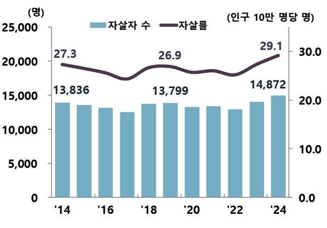 2024년 자살률 29.1명…2011년 이후 최고치