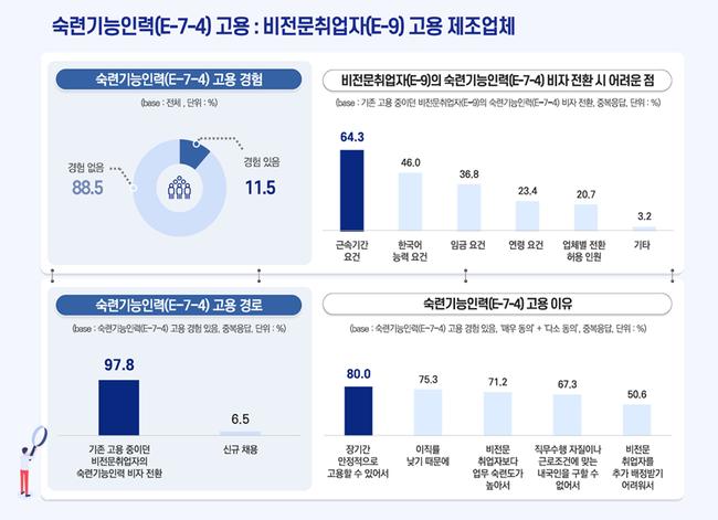 숙련기능인력 점수제 비자(E-7-4)는 제조업과 건설업 등에서 기능인력 부족 문제를 해결하기 위해 연간 3만 5천 명의 발급 상한을 유지한다.