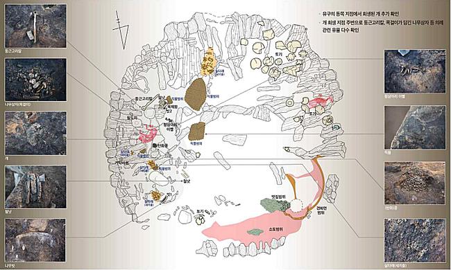 이날 공개회에서는 신라 왕경의 의례적 측면도 조명된다. 월성에서 발견된 인신공희(사람을 제물로 바치는 의식) 흔적, 월성 해자에서 출토된 의례용 축소 목재 배, 사로국 시기의 의례 유적 등이 주요 연구 성과로 소개된다. 특히, 지난해 10월 공개된 의례용 개 유물 이후 추가 조사에서 개 한 마리와 수정 목걸이, 둥근고리칼, 상어 이빨, 1,200여 개의 콩 등이 함께 발견되어 신라 초기 의례 문화를 밝힐 중요한 단서가 될 전망이다.
