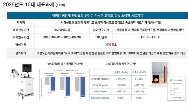 김법민 단장은 “이번 10대 대표과제는 범부처 협력을 바탕으로 사회적 문제 해결과 세계 시장 선도를 목표로 개발된 혁신 의료기기”라며, “국산 의료기기의 경쟁력을 높이고 환자들의 삶의 질을 향상시키는 데 기여할 것”이라고 밝혔다.