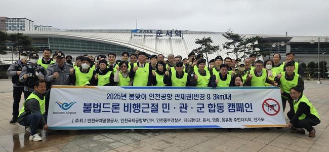 인천국제공항공사(사장 이학재)는 야외 활동이 증가하는 봄철을 맞아 불법드론으로 인한 피해를 예방하기 위해 `민·관·군 합동 공항지역 불법드론 비행금지 안내 캠페인`을 실시했다고 31일 밝혔다.