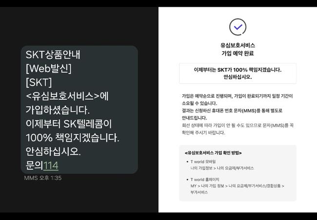 특히, `SKT가 서비스 가입 후 피해에 100% 책임지겠다`는 문구를 명시하여 사용자들이 서비스에 대한 신뢰를 갖고 안심하게 이용할 수 있도록 배려했다.