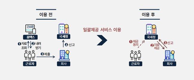 • 국세청, 회사가 근로자 대신 자료 수령하는 ‘일괄제공 서비스’ 신청 접수